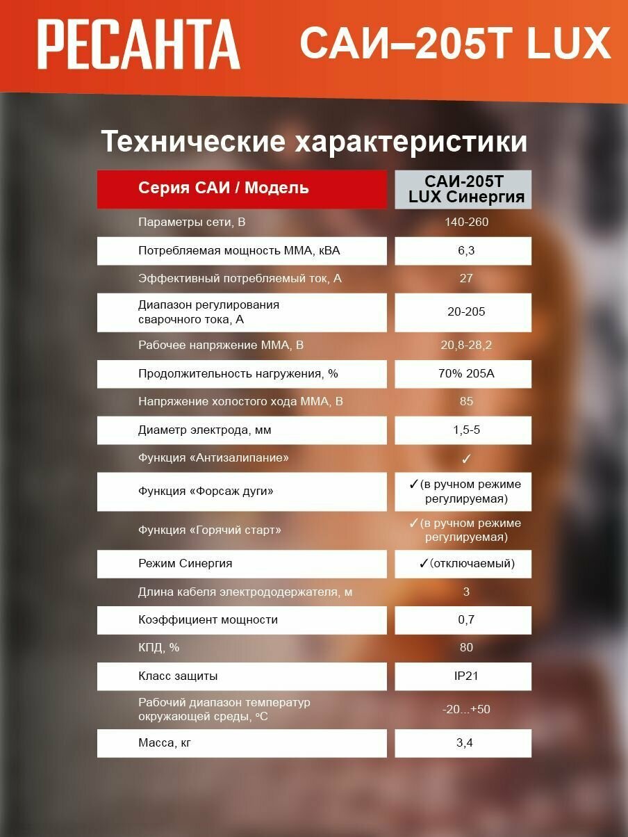 Сварочный аппарат инверторный РЕСАНТА САИ-205Т LUX