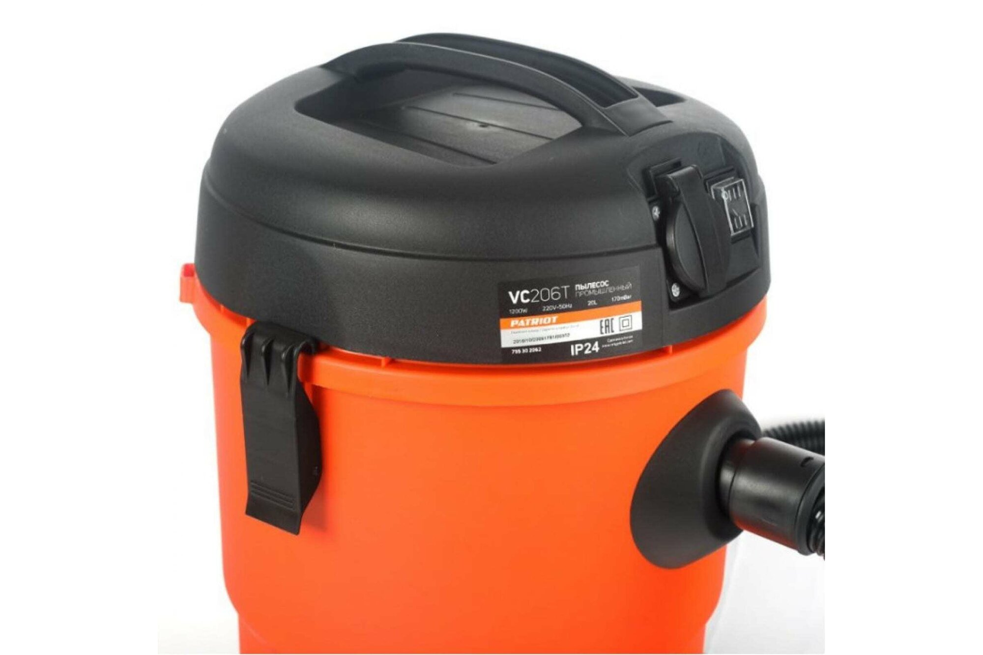 Пылесос промышленный строительный PATRIOT VC 206T, контейнер 20 л, розетка, фильтр-мешок, 1200 Вт, 170 мБар, для сухой и влажной уборки