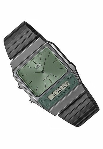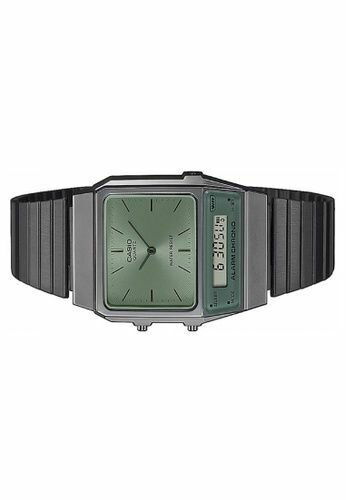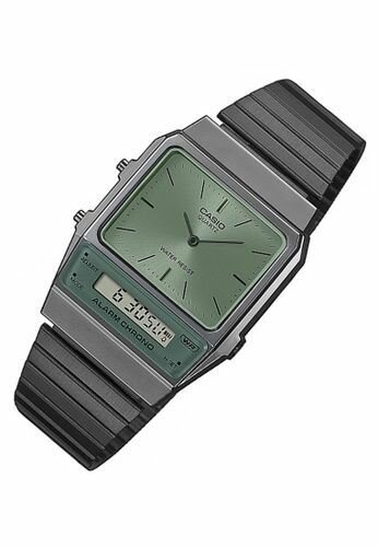 AQ-800E-3A Casio наручные часы кварцевые WR30 (3 атм) мужские, женские серебряный, зеленый секундомер будильник отображение числа, второй часовой пояс, отображение дня недели, отображение месяца акриловое стекло