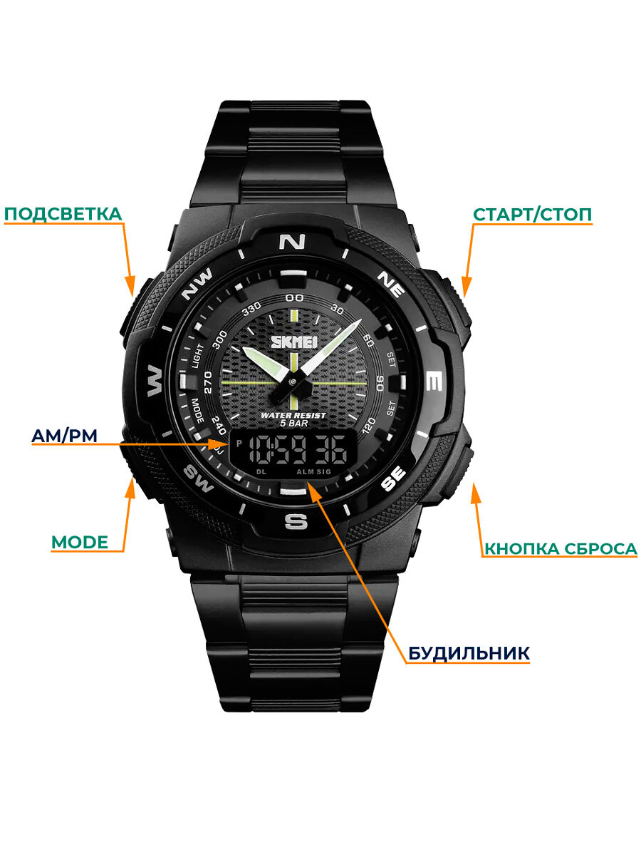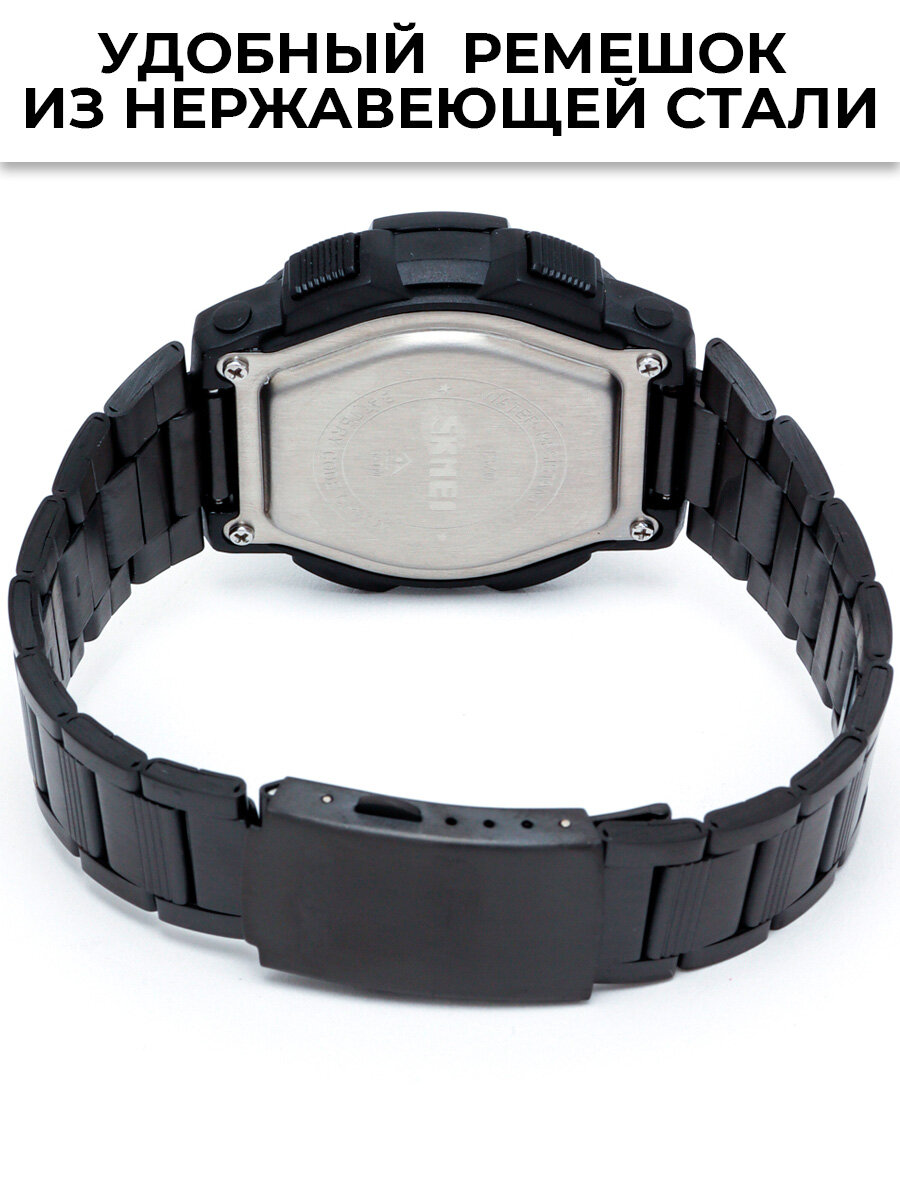 Часы наручные мужские электронные классические SKMEI с будильником и секундомером, черные интересное: