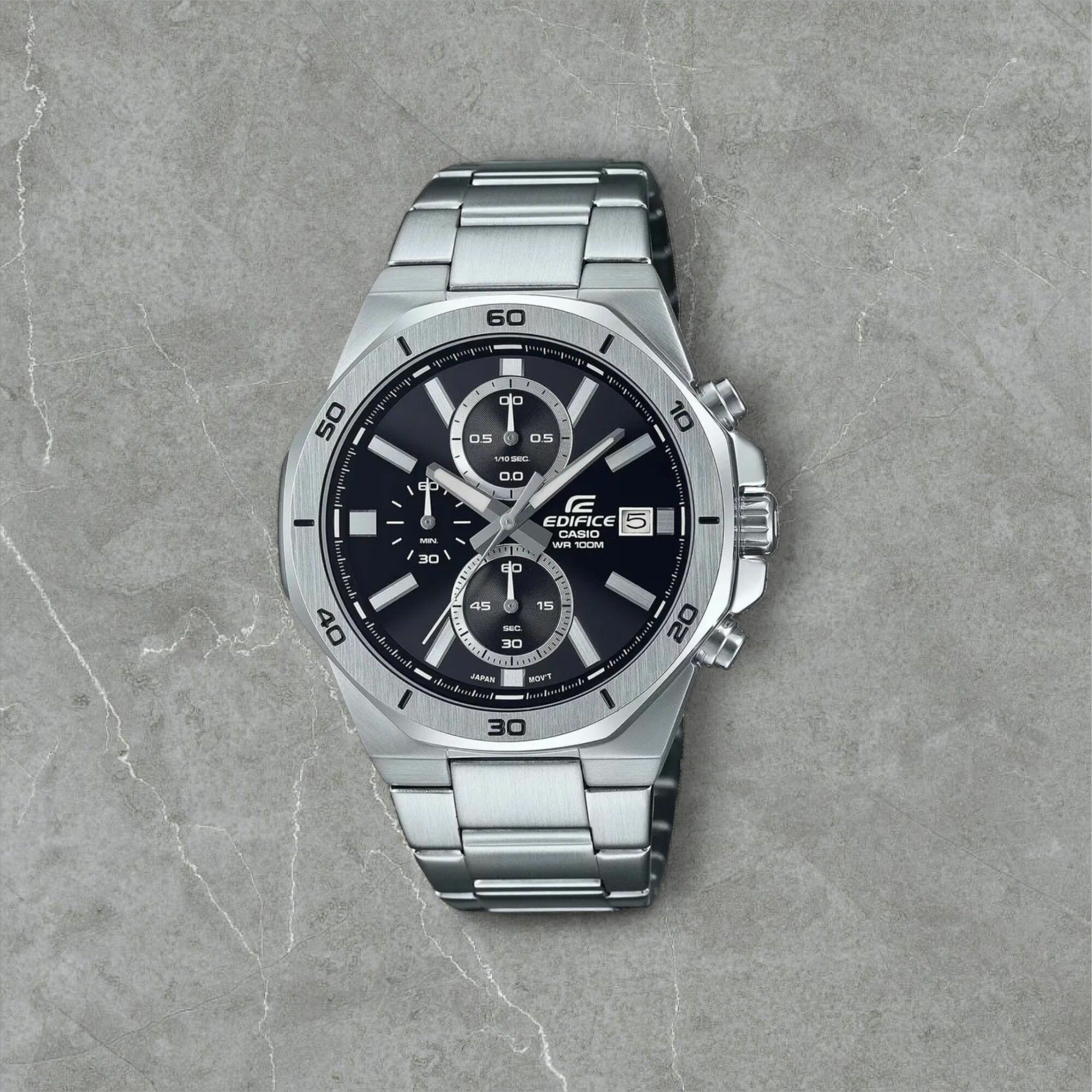 EFR-571D-1A Casio наручные часы кварцевые WR100 (10 атм) мужские серебряный, черный отображение числа подсветка стрелок минеральное стекло