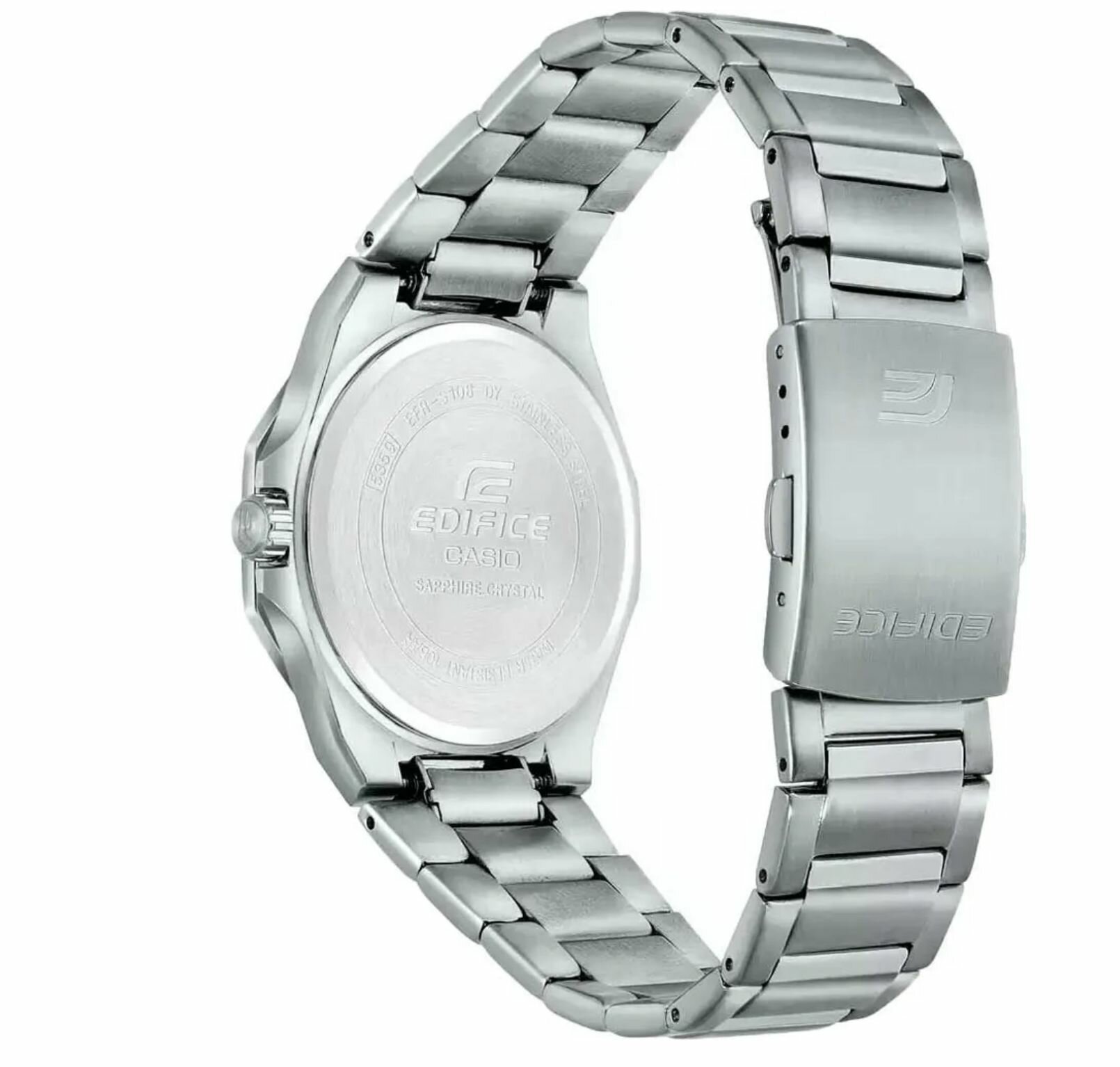 EFR-571D-1A Casio наручные часы кварцевые WR100 (10 атм) мужские серебряный, черный отображение числа подсветка стрелок минеральное стекло