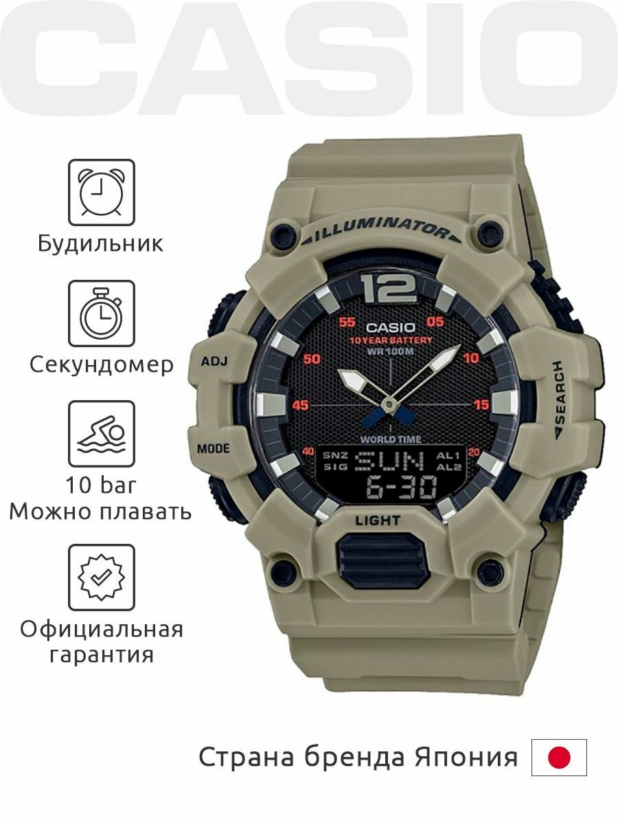 Наручные часы CASIO Collection HDC-700-3A3 кварцевые, будильник, хронограф, шагомер, секундомер, таймер обратного отсчета, водонепроницаемые, противоударные, подсветка стрелок, подсветка дисплея, хаки