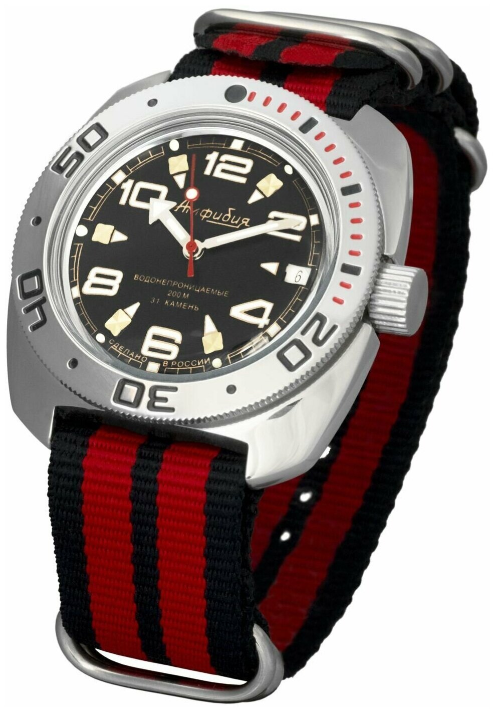 Купить Наручные механические часы с автоподзаводом Восток Амфибия 710335 black red