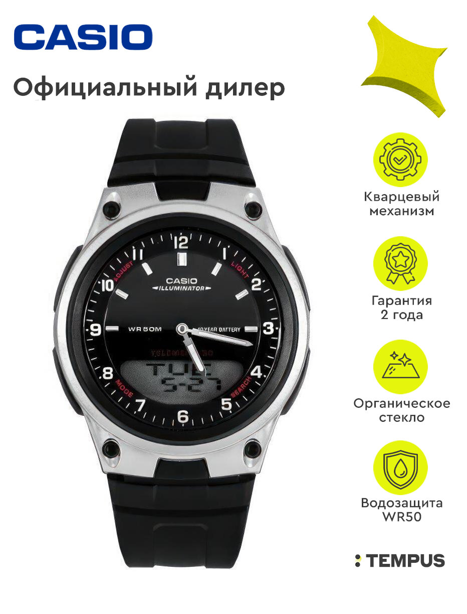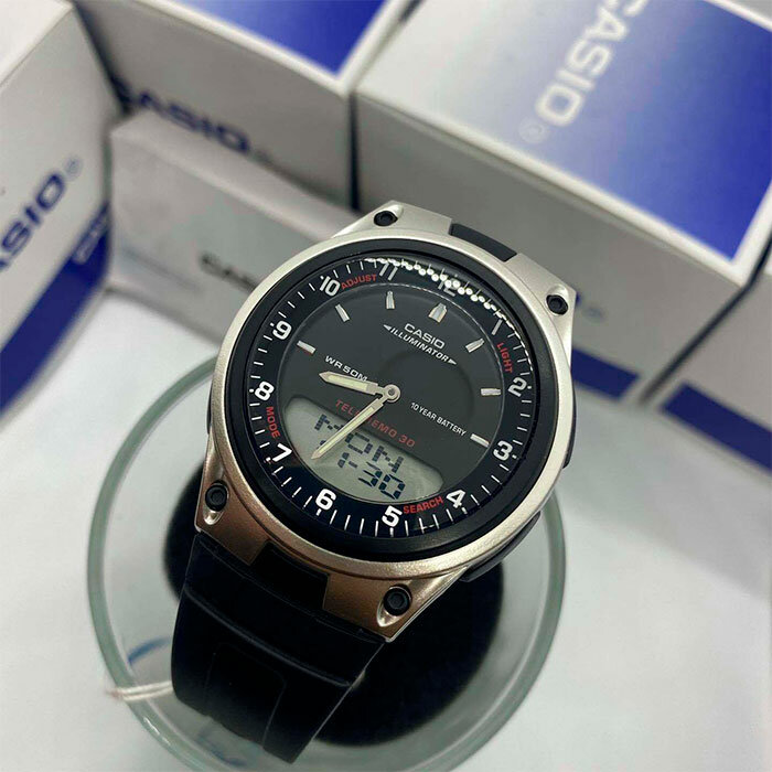 AW-80-7A Casio наручные часы кварцевые WR50 (5 атм) мужские, женские будильник, записная книжка отображение числа, второй часовой пояс акриловое стекло