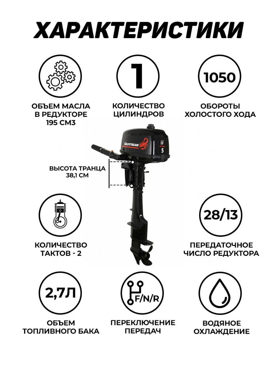 Подвесной бензиновый лодочный мотор Golfstream Т5ВМS (2 такта; 5 л.с., завод Parsun) интересное: