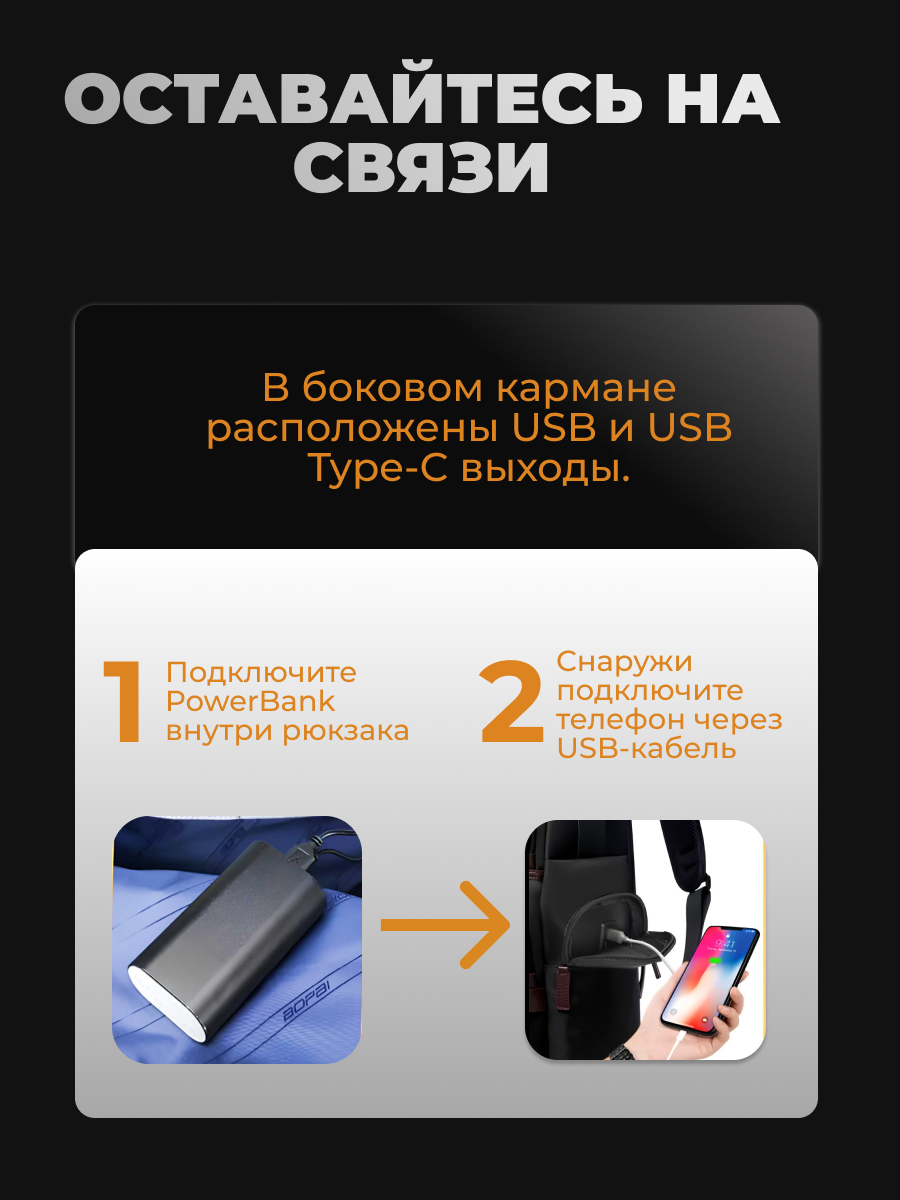 | Дополнительная информация | внешний USB разъем,водоотталкивающий материал,карман на лямке |