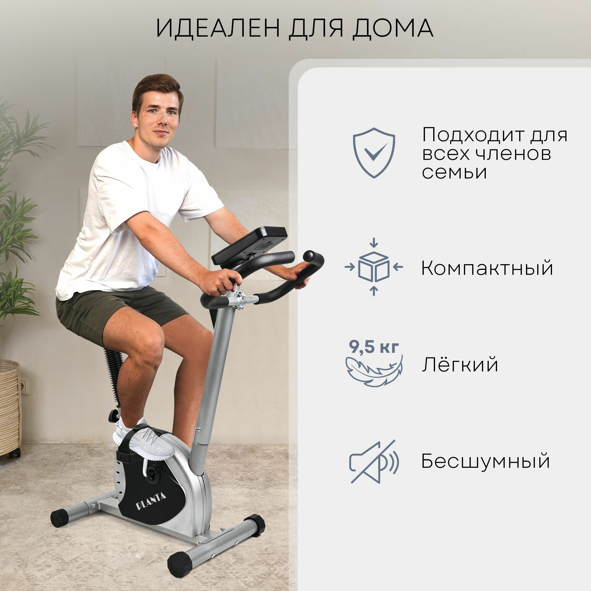 Велотренажер PLANTA SL-BIKE-050 8 уровней интенсивности, держатель для телефона, антискользящие педали интересное: