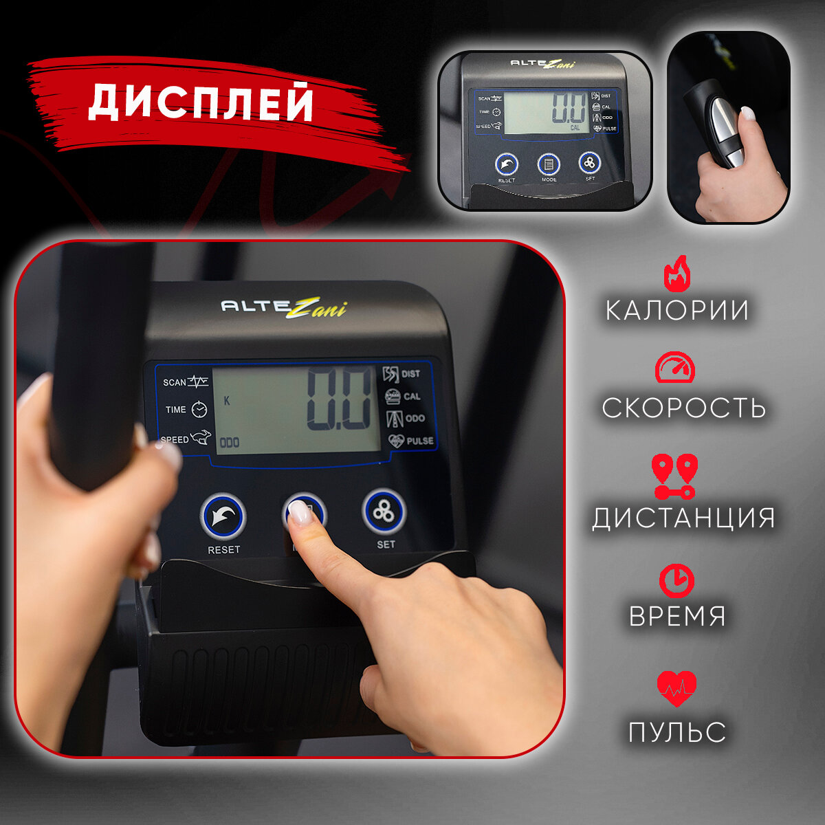 | Показания дисплея | расход калорий / средняя скорость / пройденное расстояние / общее время тренировки / пульс |