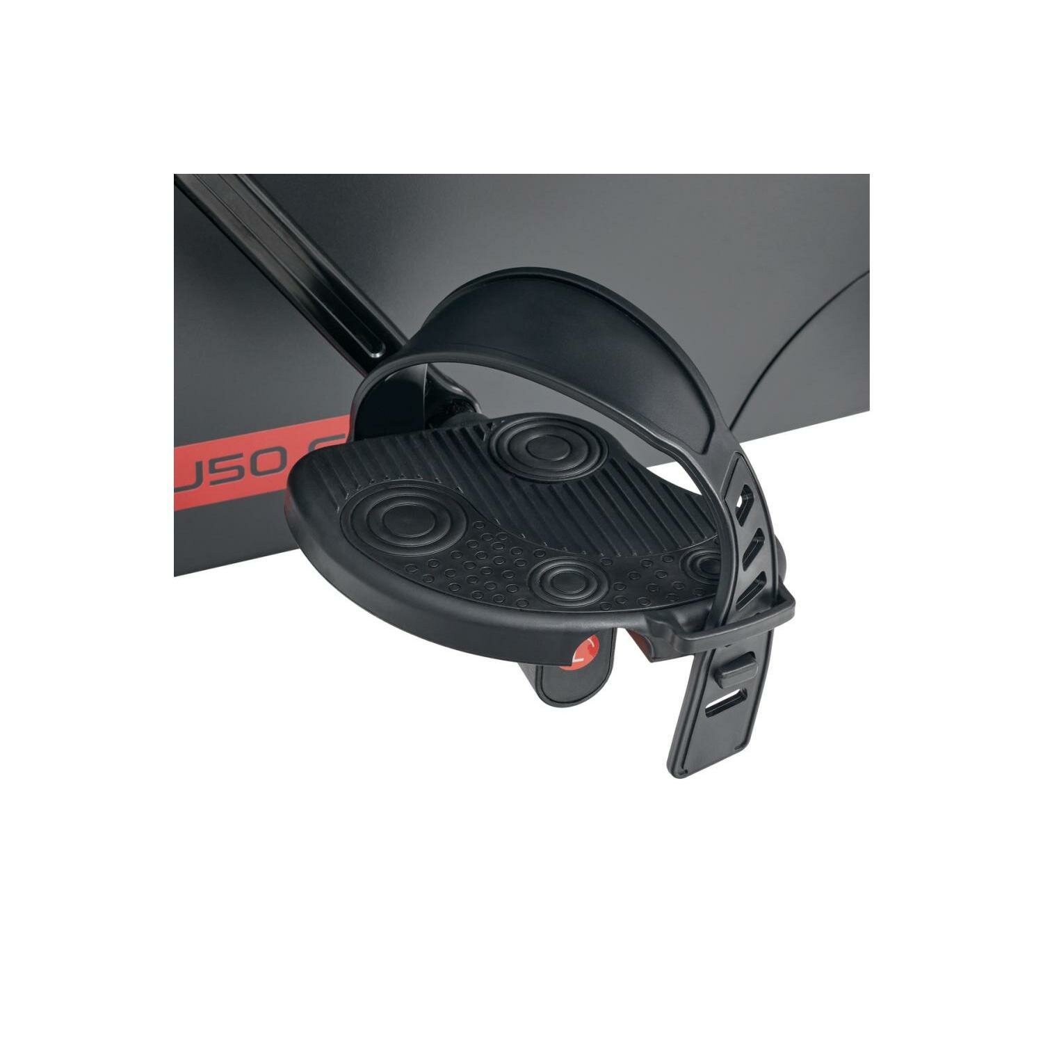 Иногда при старте виснет компьютер, предполагаю что это особенность из-за отсутвия стабильного питания от розетки, т.к. проблему замечали только когда при выключенном тренажере начинаешь крутить слабо или с паузой. Когда приноровились стартовать сразу равномерно - возникать перестало. Подставка под телефон торчит довольно значительно, периодически задеваю |