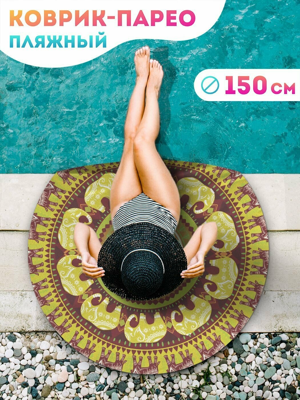 Парео и Пляжный коврик JoyArty "Слоновая мандала", трикотаж 150 см