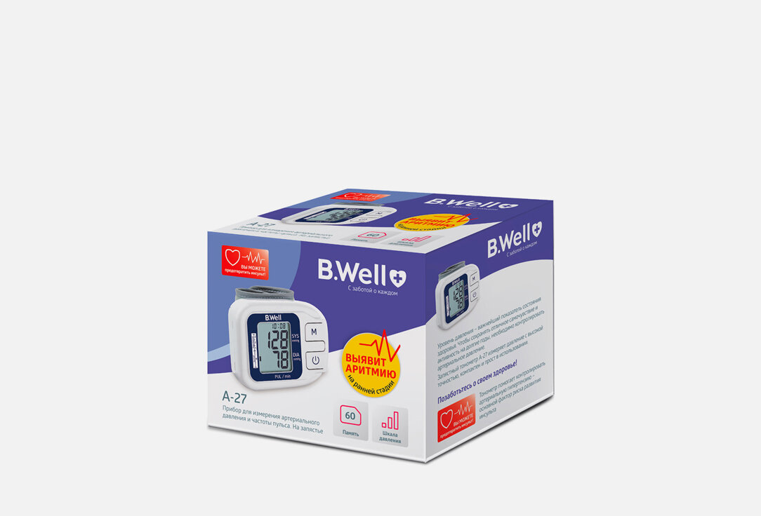 Тонометр B.Well А-27 запястный, память на 60 измерений, дата и время