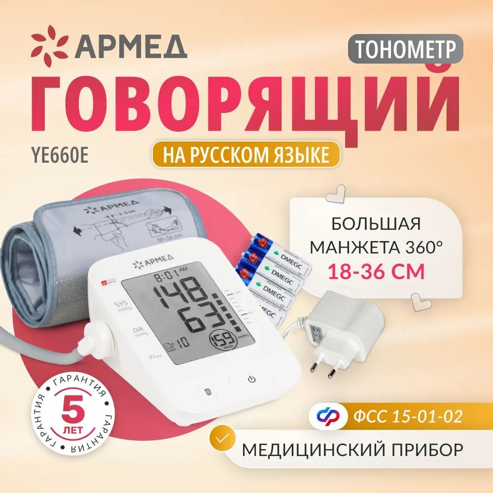 Тонометр автоматический YE660Е Армед (медицинский, домашний, цифровой, измеритель, голосовой, говорящий, на плечо)