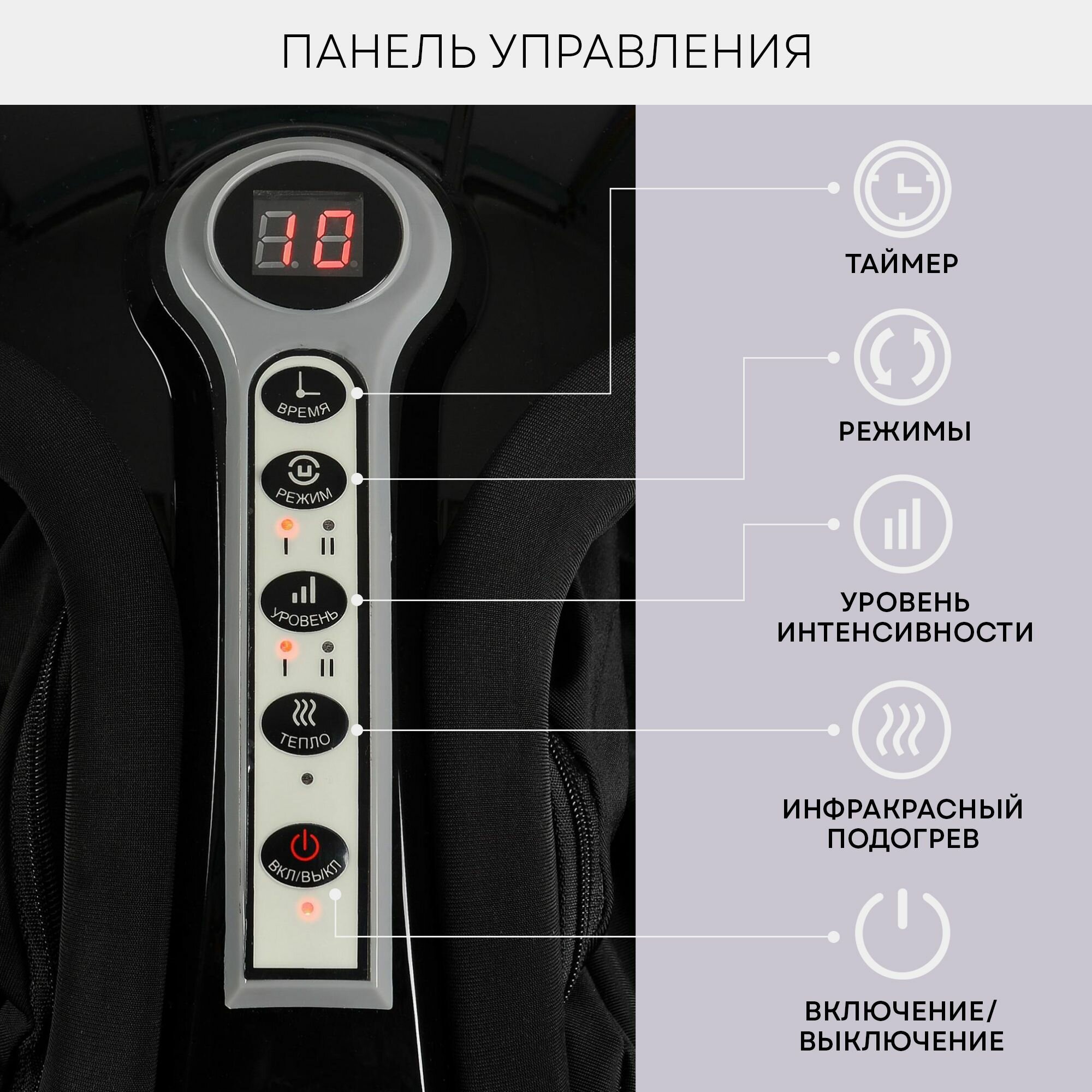 Массажер приобретен на подарок родителям. В использовании около недели. Прост в настройках, удобен в использовании. Плюс- съемные чехлы
