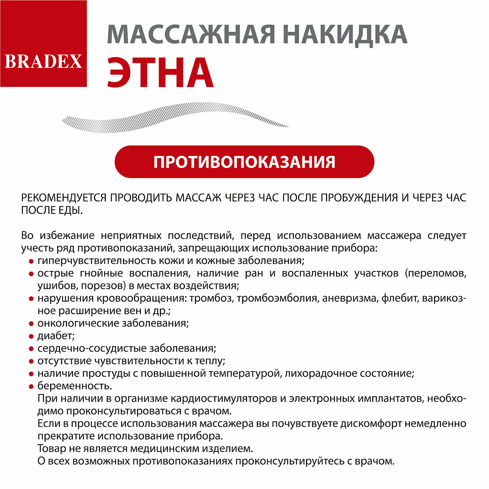 | Минусы: | Получилось заказать только с 3го раза, некоторые недобросовестные продавцы присылают вместо Bradex дешевый массажер с меньшей мощностью |