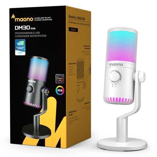 Maono DM30RGB (white), конденсаторный USB микрофон, 24bit 48kHz, ПО Maono Link, RGB подсветка