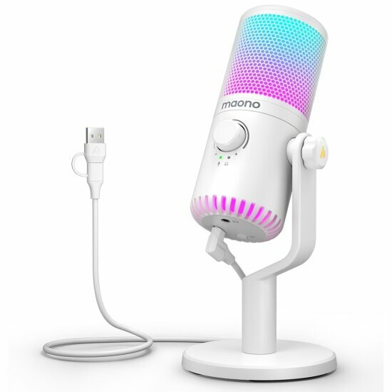 Микрофон MAONO, модель DM30 с RGB подсветкой, USB, белый