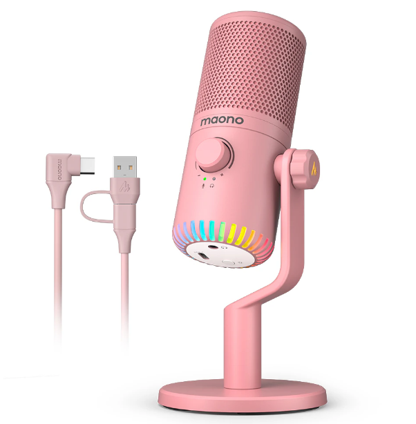 Maono DM30RGB (pink), конденсаторный USB микрофон, 24bit 48kHz, ПО Maono Link, RGB подсветка