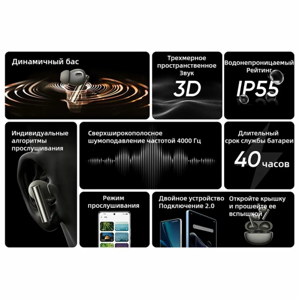 | Функции | Talk through (режим прозрачности) |