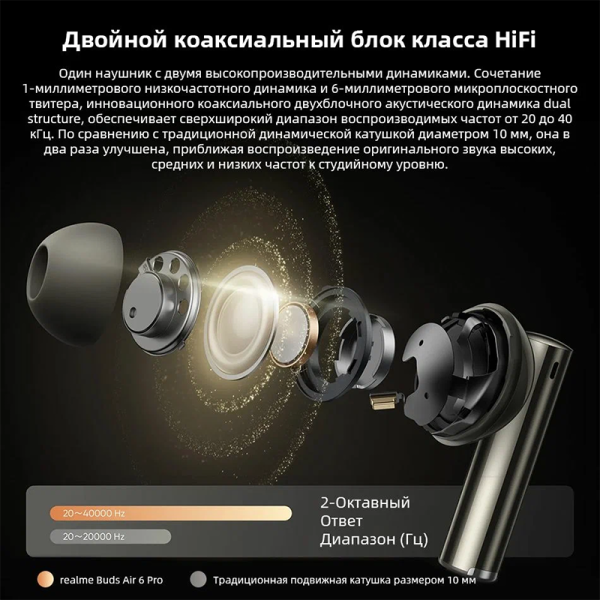 СохранитьГарнитура внутриканальные Realme Buds Air 6 серебристый беспроводные bluetooth в ушной раковине (631209000121) интересное: