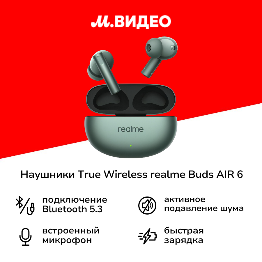 СохранитьНаушники REALME Buds Air 6, Bluetooth, внутриканальные, зеленый [631209000124] интересное: