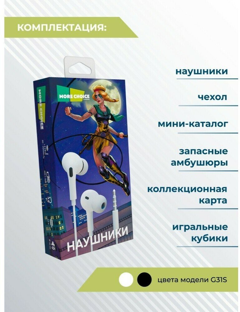 Наушники More choice G31S, mini jack 3.5 mm, белый