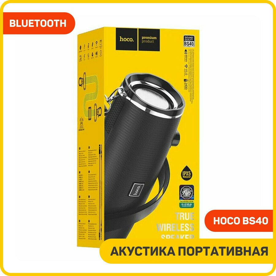Портативная колонка Hoco BS40, 14 Вт, ВТ 5.0, 2400 мАч, чёрная