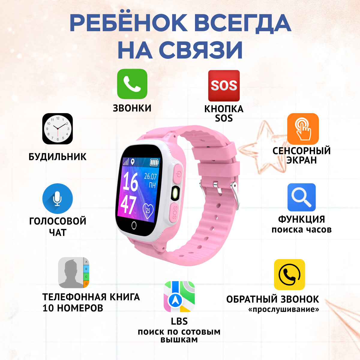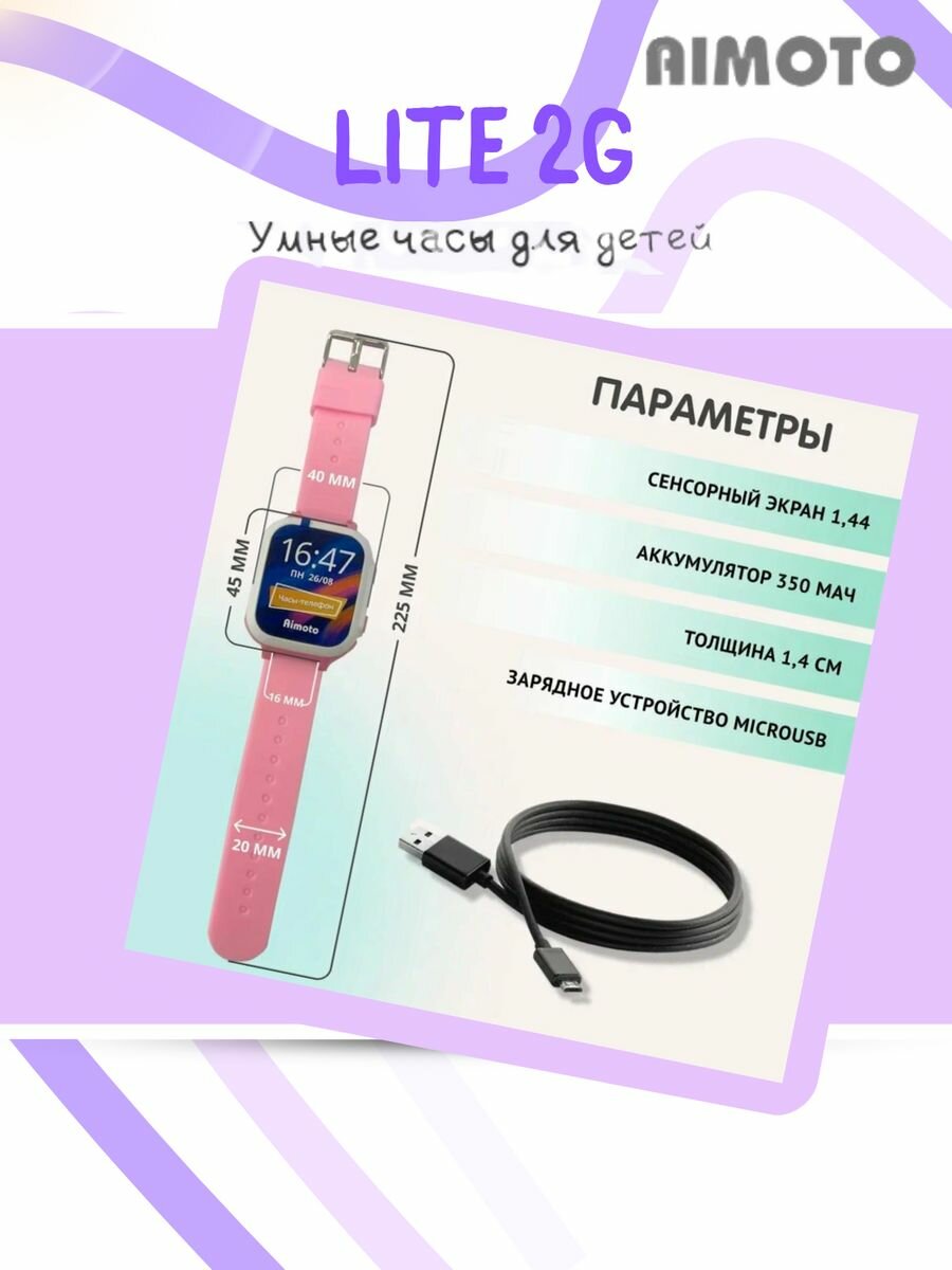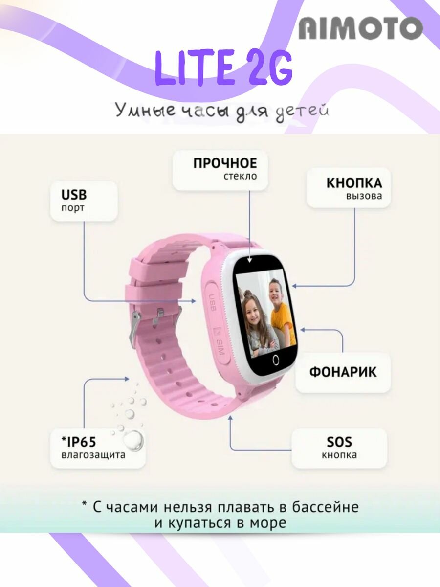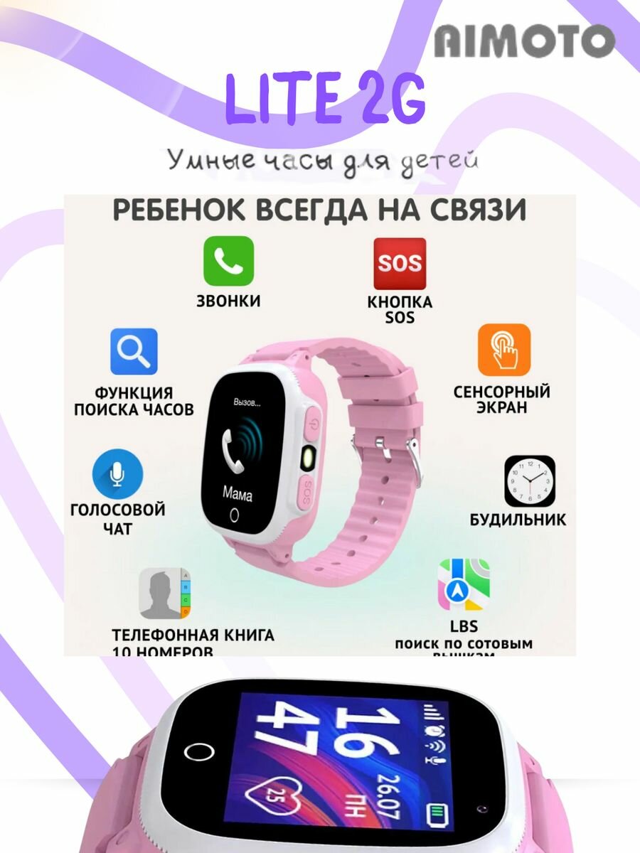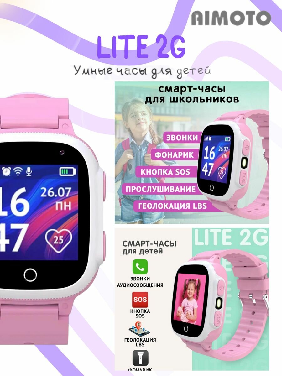 Умные часы для детей Aimoto Lite 2G детские часы телефон с обратным звонком, кнопкой SOS, LBS геолокация (розовый)