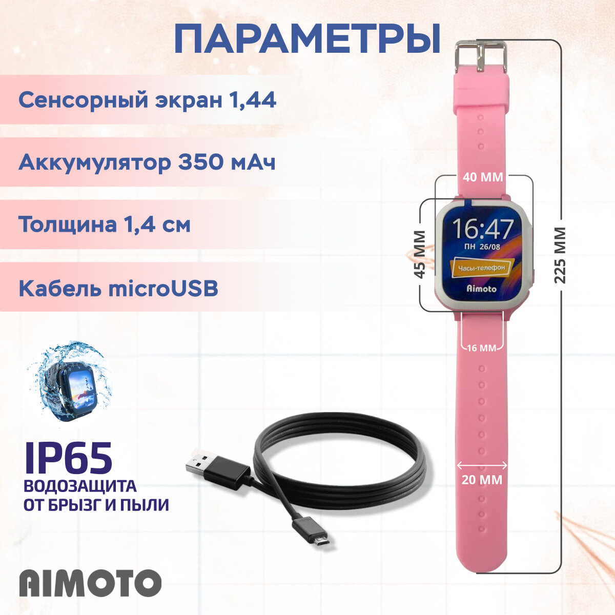 Детские смарт-часы Aimoto Lite, 1.44", 2G, звонки, SOS,история перемещений,сообщения,розовые