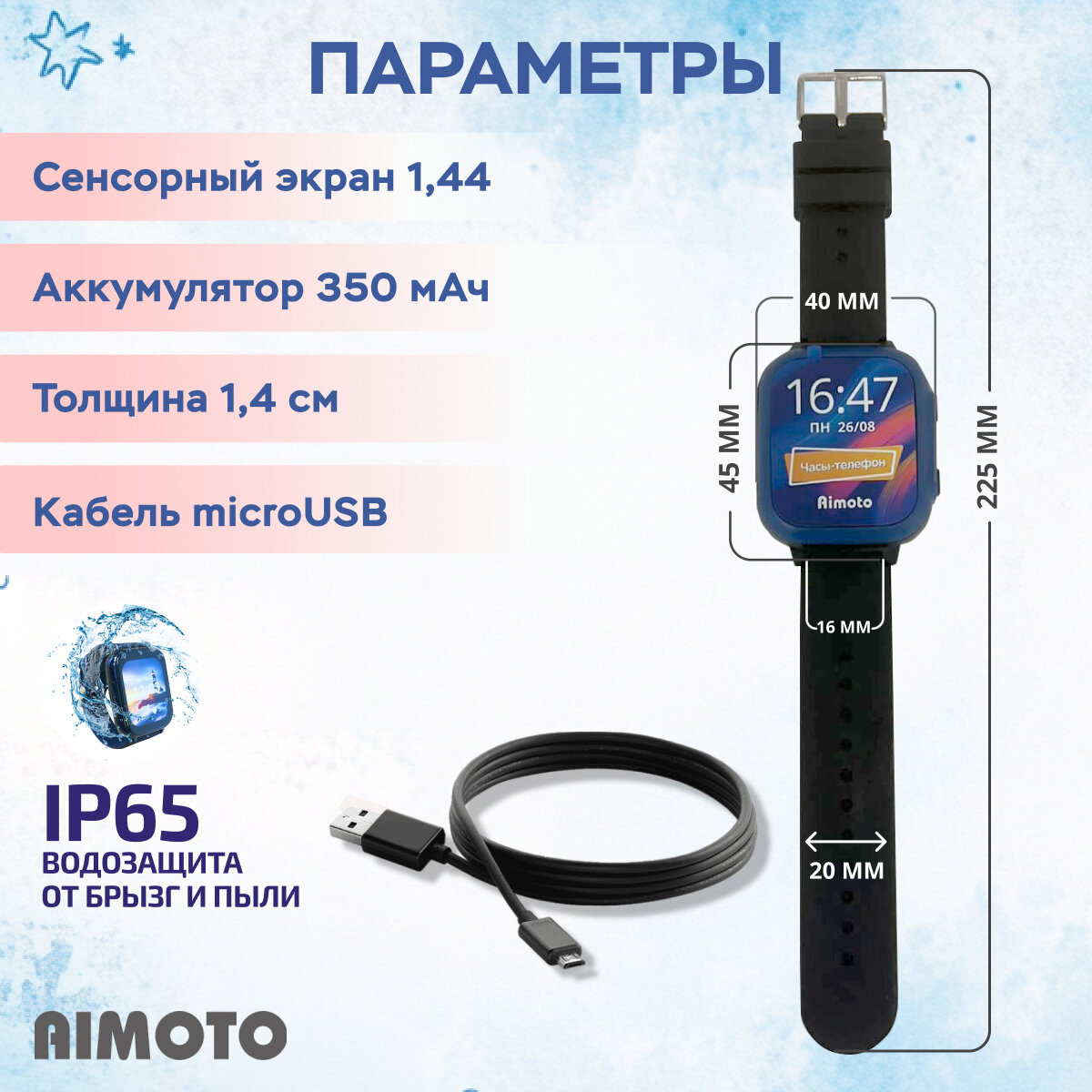 СохранитьУмные часы для детей Aimoto Lite 2G детские часы телефон с обратным звонком, кнопкой SOS, LBS геолокация (черный) интересное: