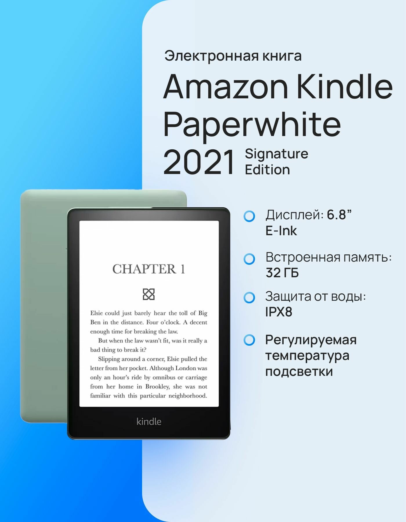 СохранитьЭлектронная книга Amazon Kindle PaperWhite 2021 32Gb Signature Edition Зеленый | Agave Green интересное: