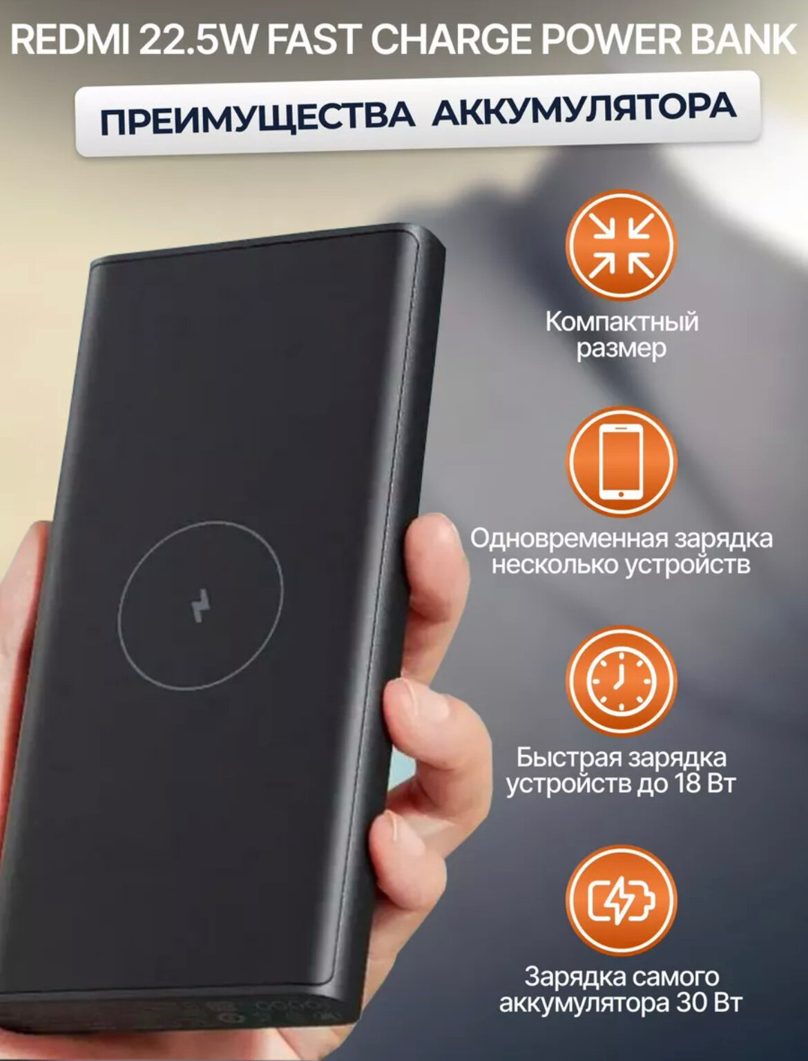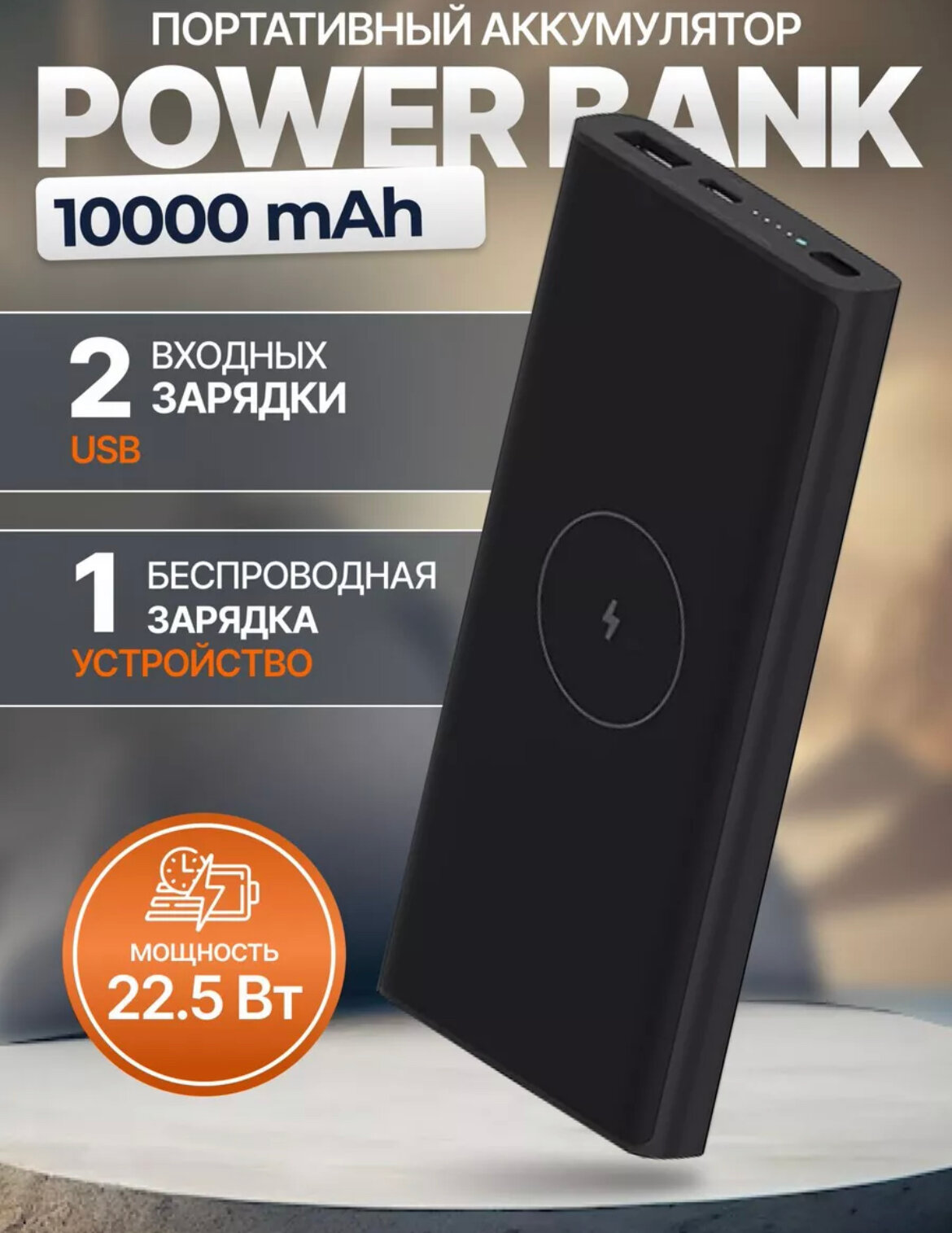 Внешний аккумулятор Xiaomi Mi 10W Wireless (BHR5460GL), USB/USB-C, 3 А, 10000 мАч, черный