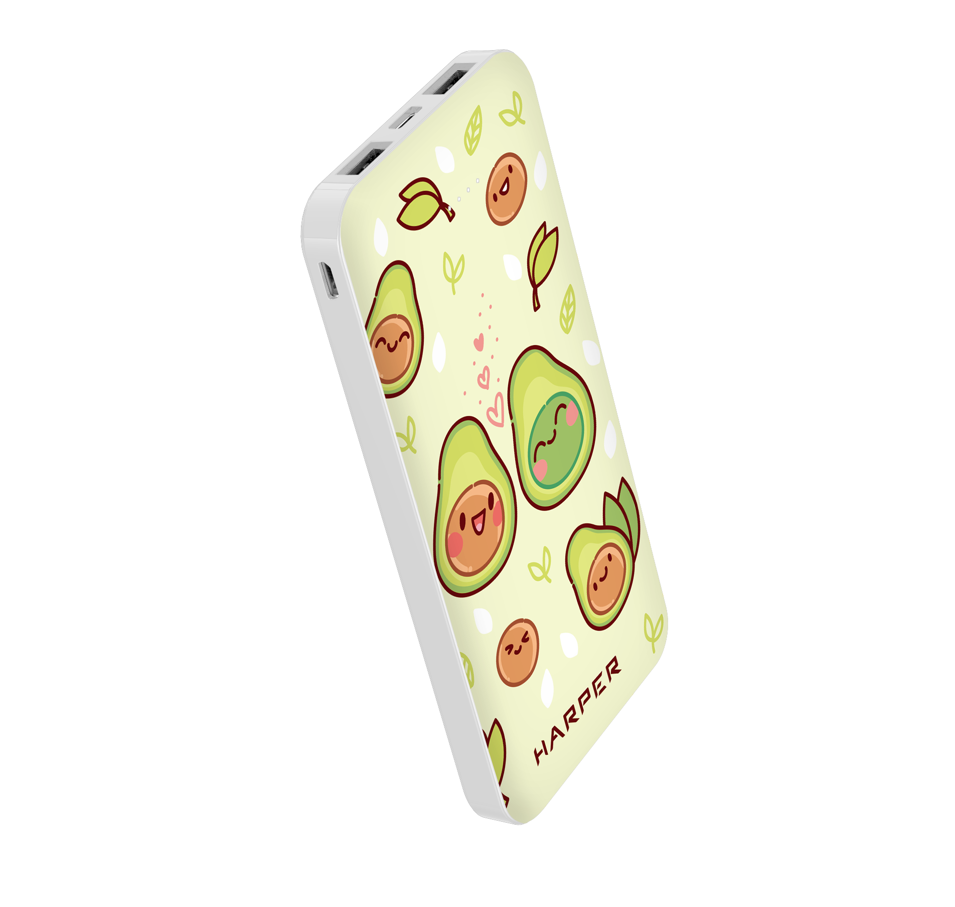 Внешний аккумулятор HARPER "Avocado", 10000 mAh, 2 USB-порта, 2 разъема, всего лишь 212 гр.
