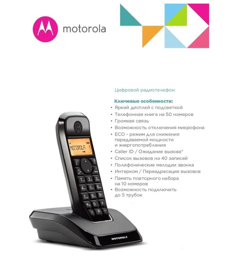 Радиотелефон Dect Motorola S1201 черный АОН интересное: