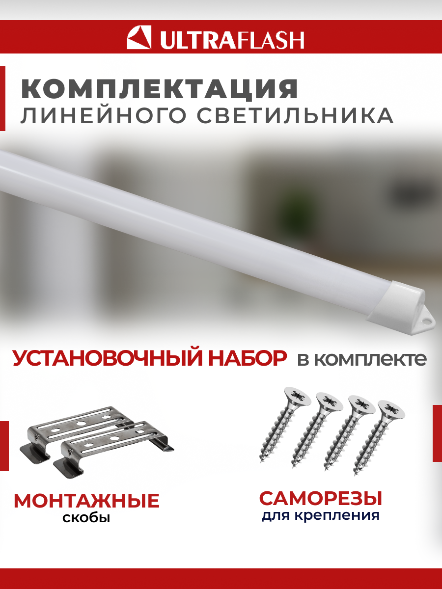 Линейный светильник Ultraflash LWL-2022-02 (Led линейный,18 Вт,4500К, с проводом и выключателем)