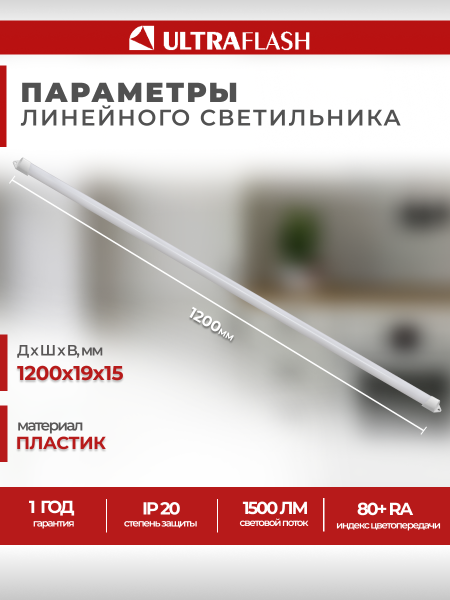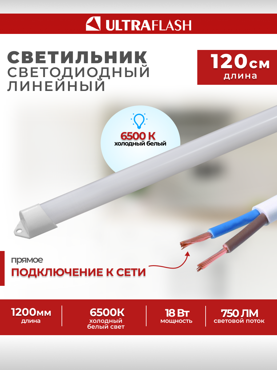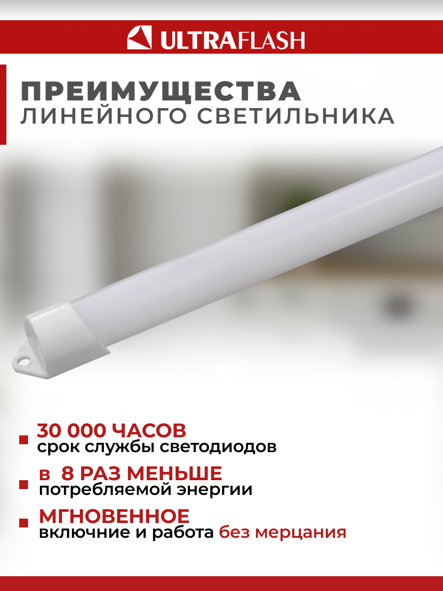 Линейный светильник Ultraflash LWL-2022-02 (Led линейный,18 Вт,4500К, с проводом и выключателем)