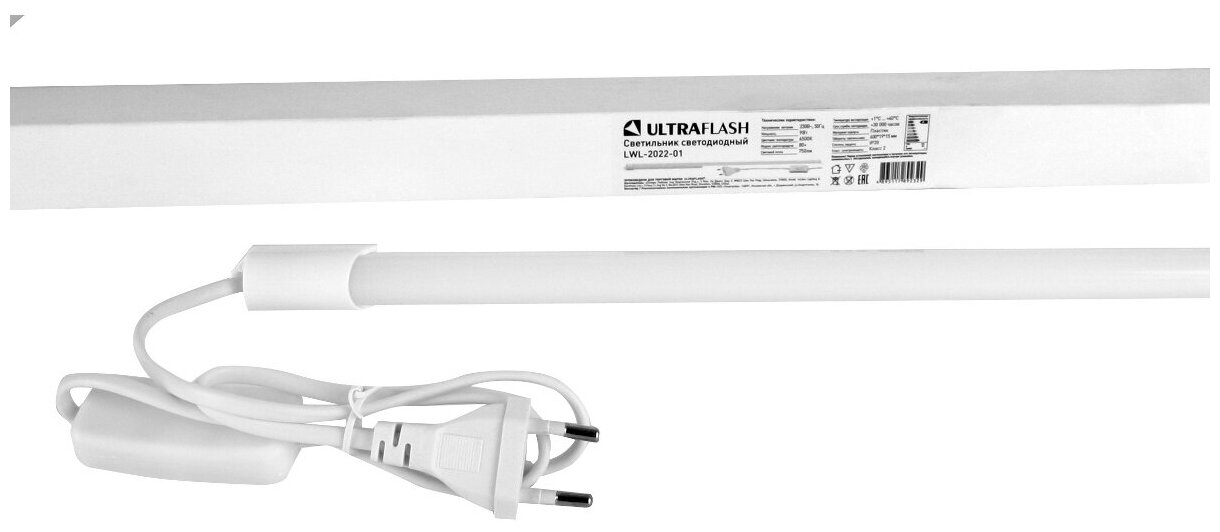 Линейный светильник Ultraflash LWL-2022-02 (Led линейный,18 Вт,4500К, с проводом и выключателем)