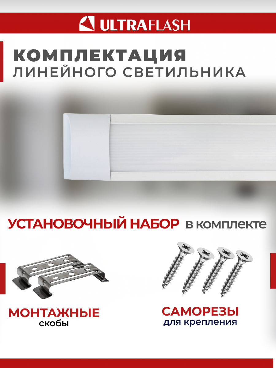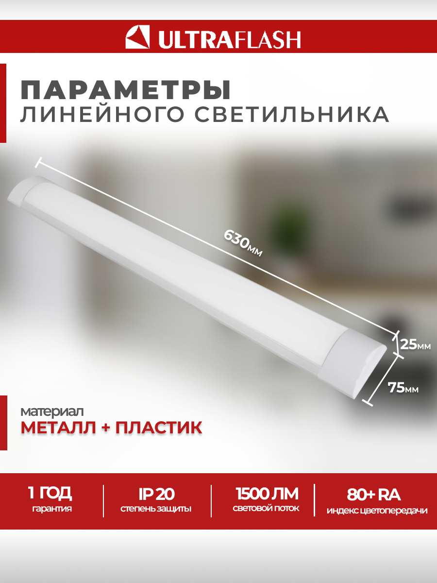 Линейный светильник Ultraflash LWL-2022-02 (Led линейный,18 Вт,4500К, с проводом и выключателем)