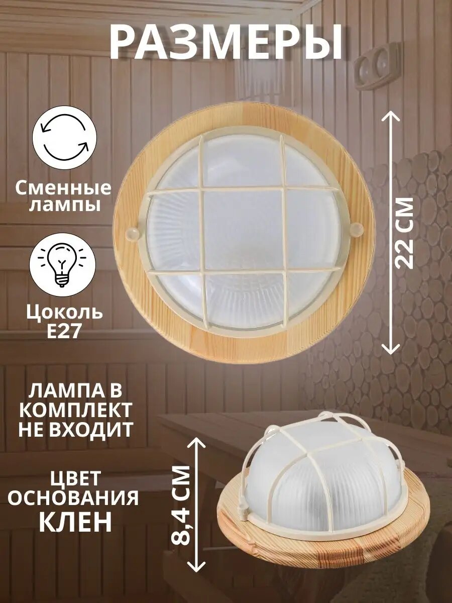 СохранитьFERON НБО 03-60-012 Светильник для бани и сауны 220V 60Вт Е27 IP54 дерево, клен, круг, с решеткой 11570 интересное: