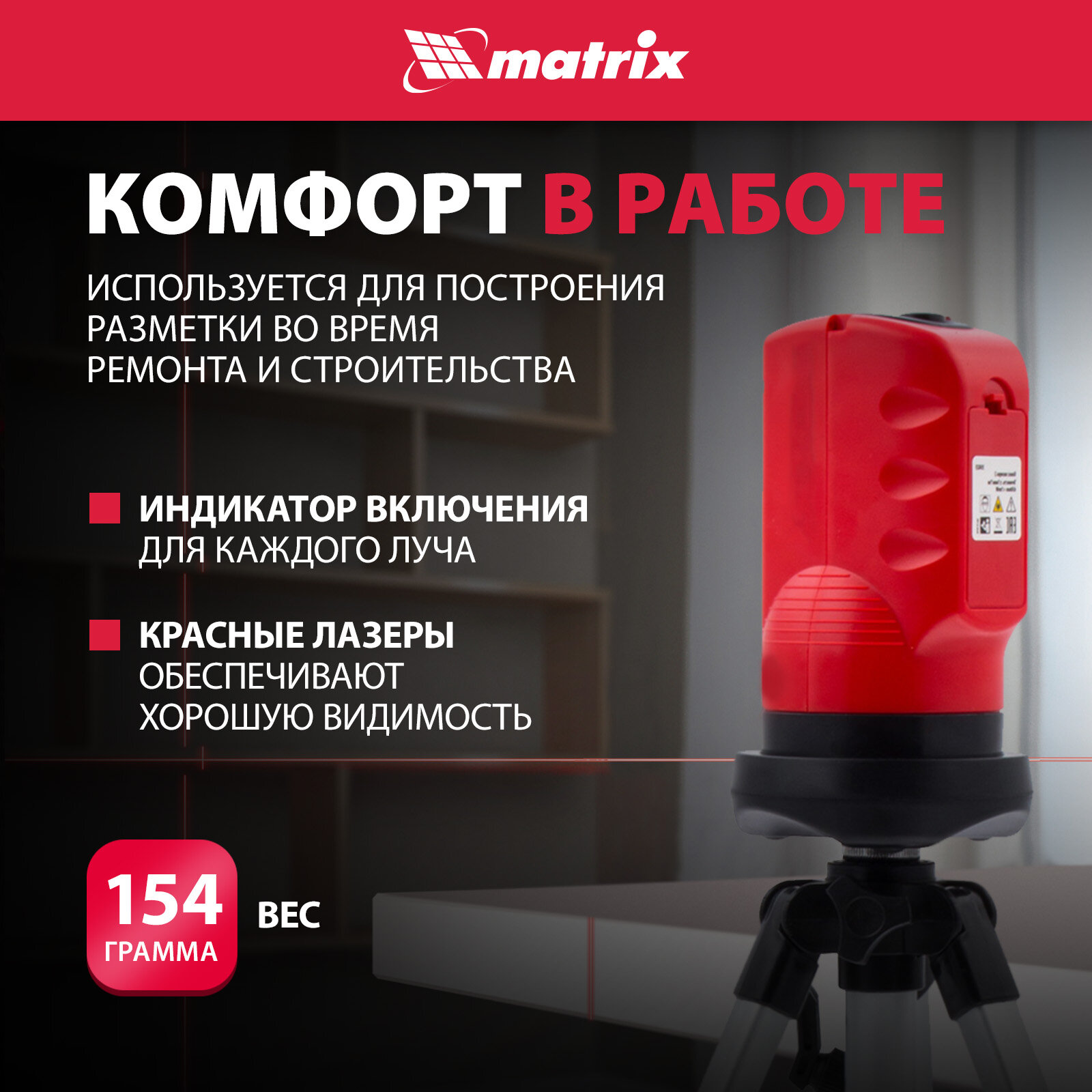 Уровень лазерный, 100 мм, штатив 1260 мм, самовыравнивающийся Matrix