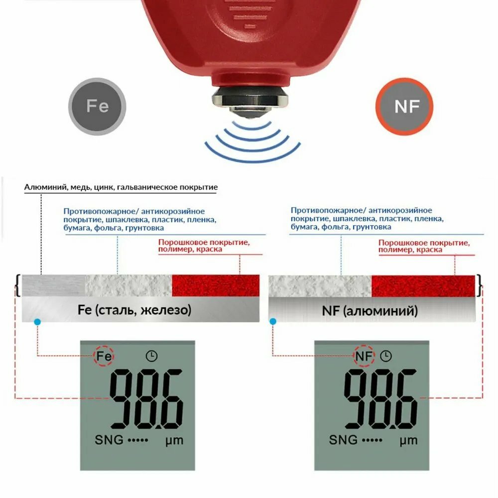 iCarTool Толщиномер лакокрасочных покрытий Fe/NFe IC-T150