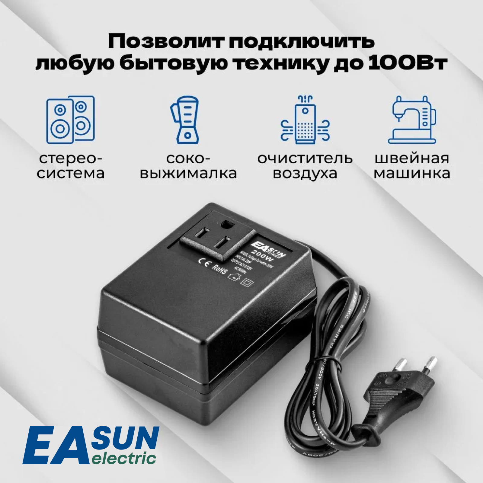 Адаптер питания 220/110В. EASun Electric. Подключение приборов, работающих от 110В к сети 220В. Мощность до 100Вт. Понижающий трансформатор. Инвертор напряжения. интересное: