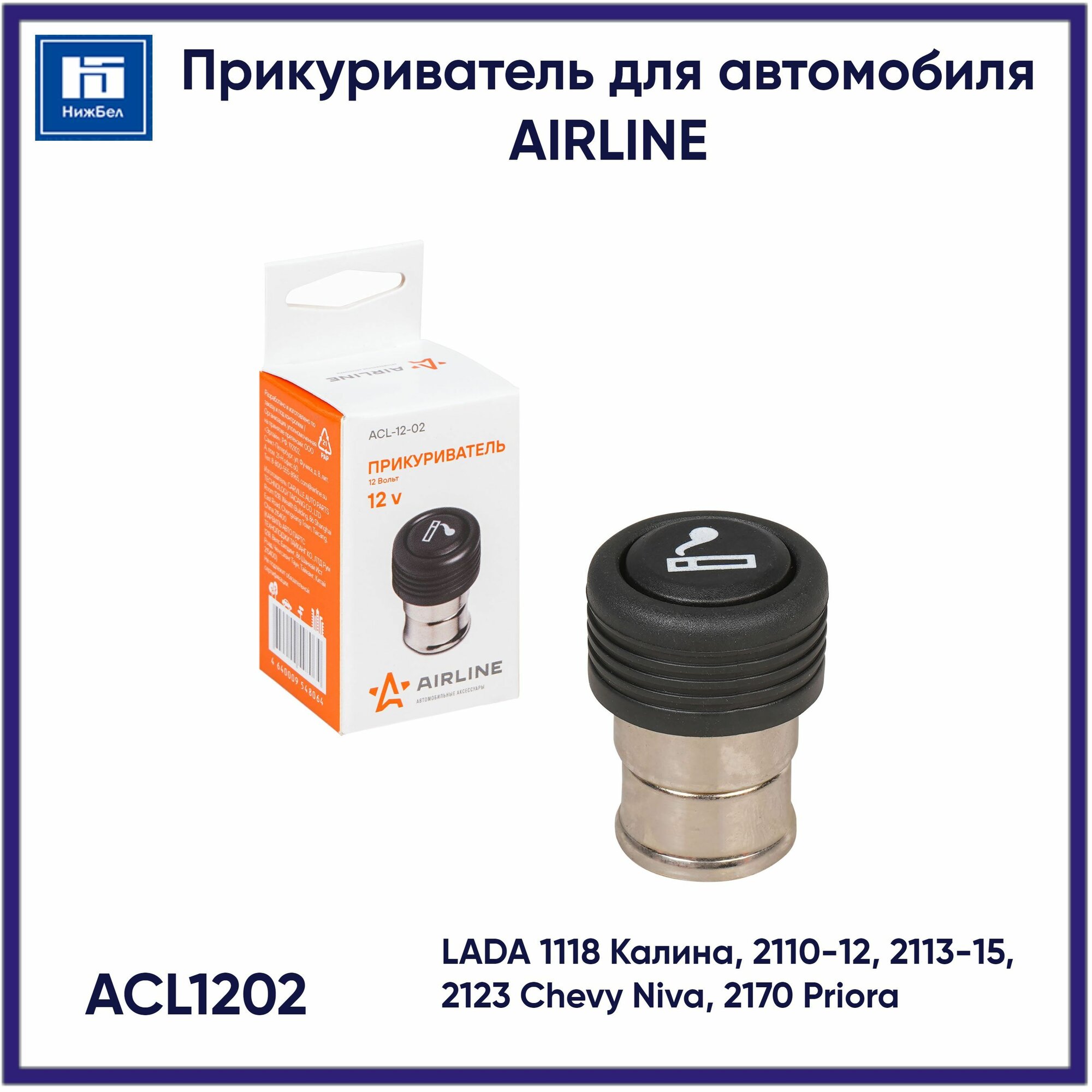 AIRLINE Прикуриватель 1118,2110-15,2123,2170 (12В) "AIRLINE"(ACL-12-02)