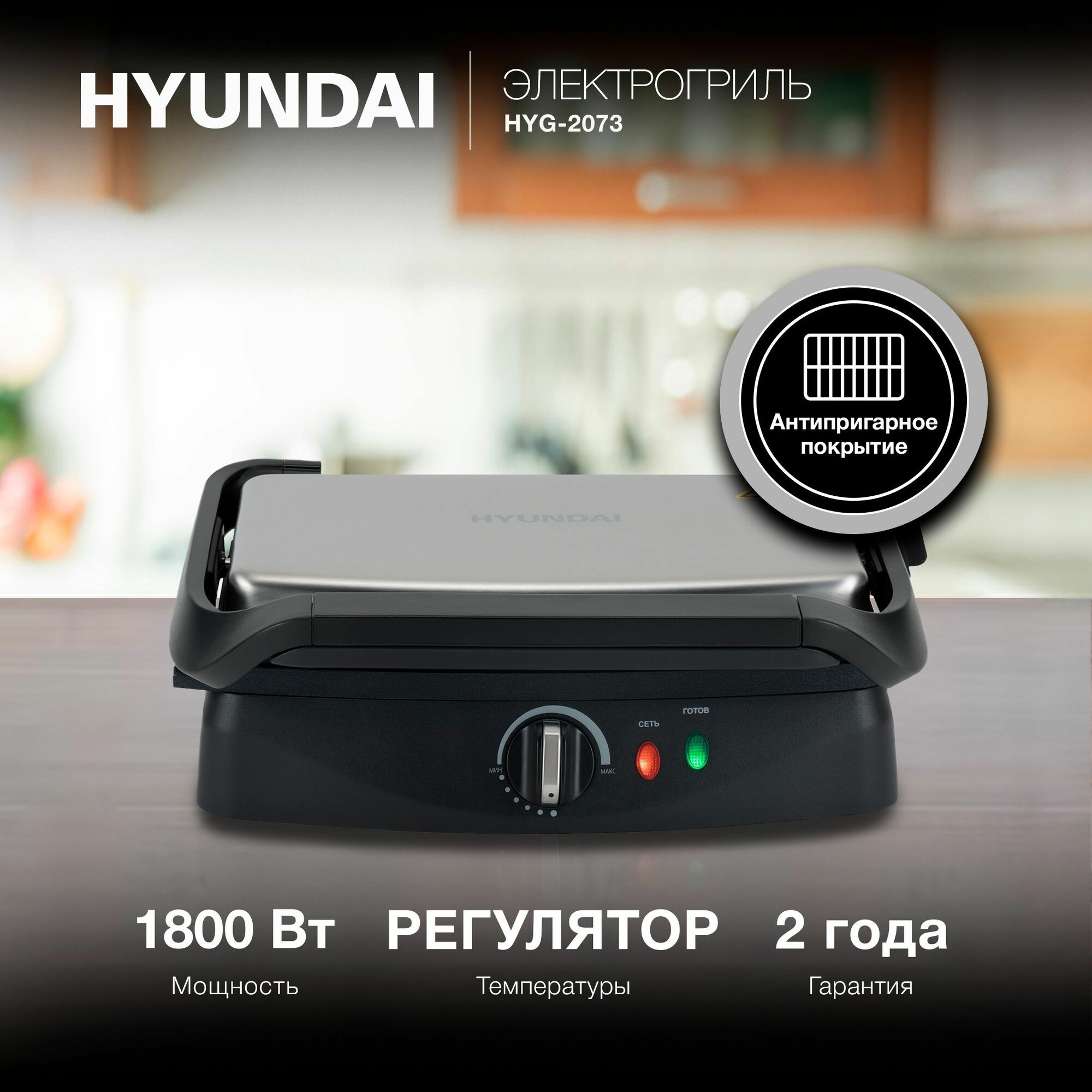 Купить Электрогриль Hyundai HYG-2073 серебристый/черный, мощность 1800Вт, нагревательный элемент: ТЭН