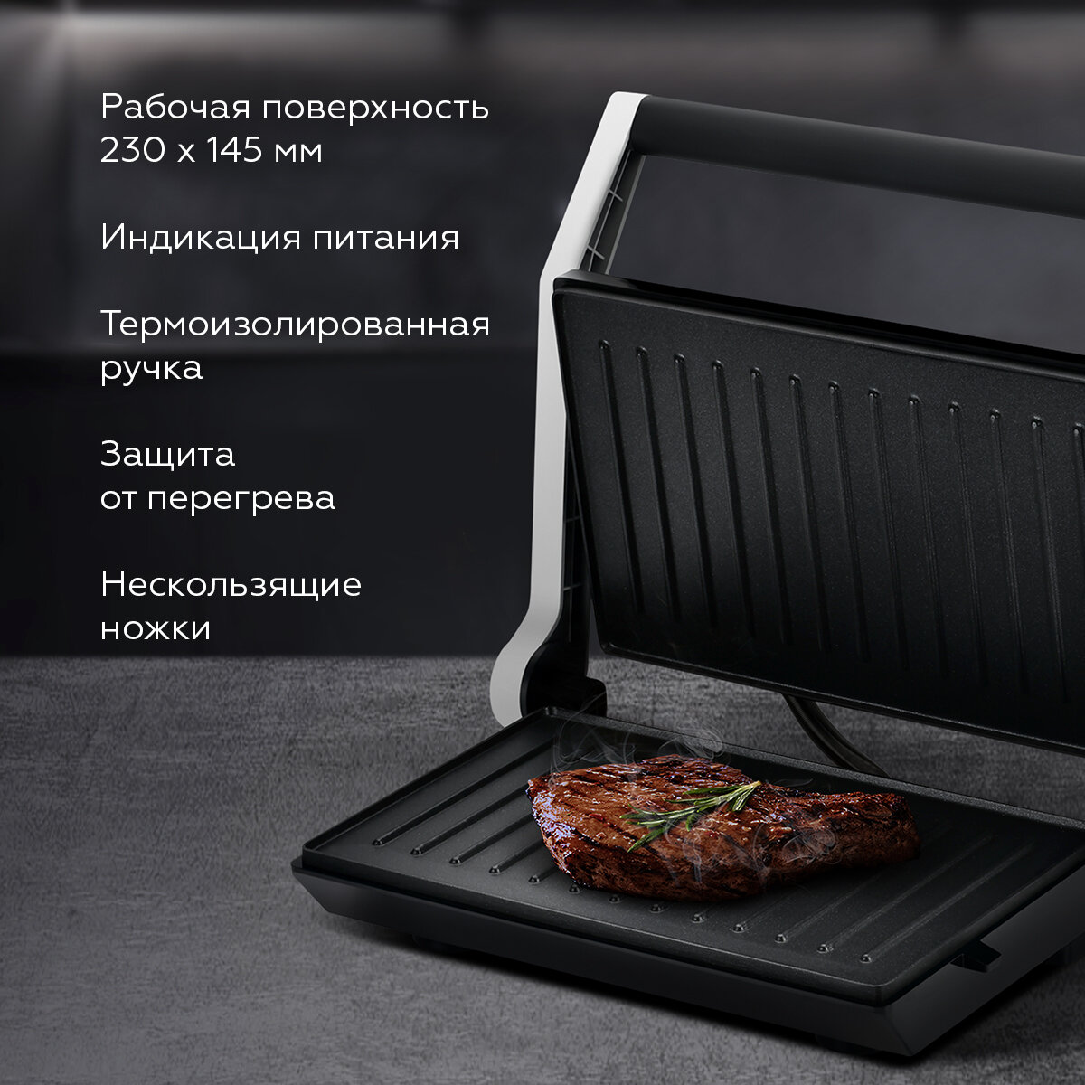 Электрогриль DOMFY Metal DSM-EG502, черный и серебристый