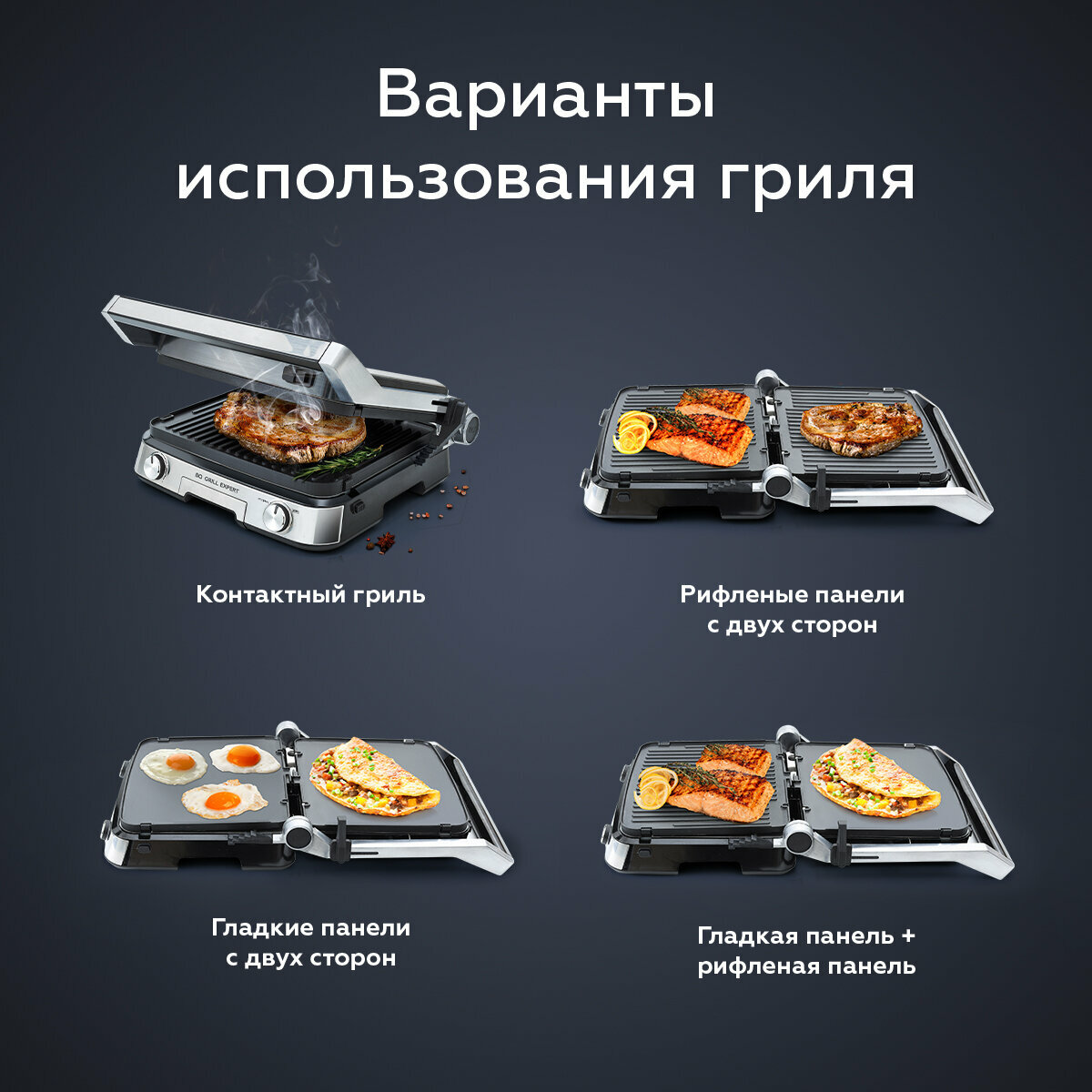 Гриль BQ GR1000 Серый металлик (2200 Вт, съемные пластины)