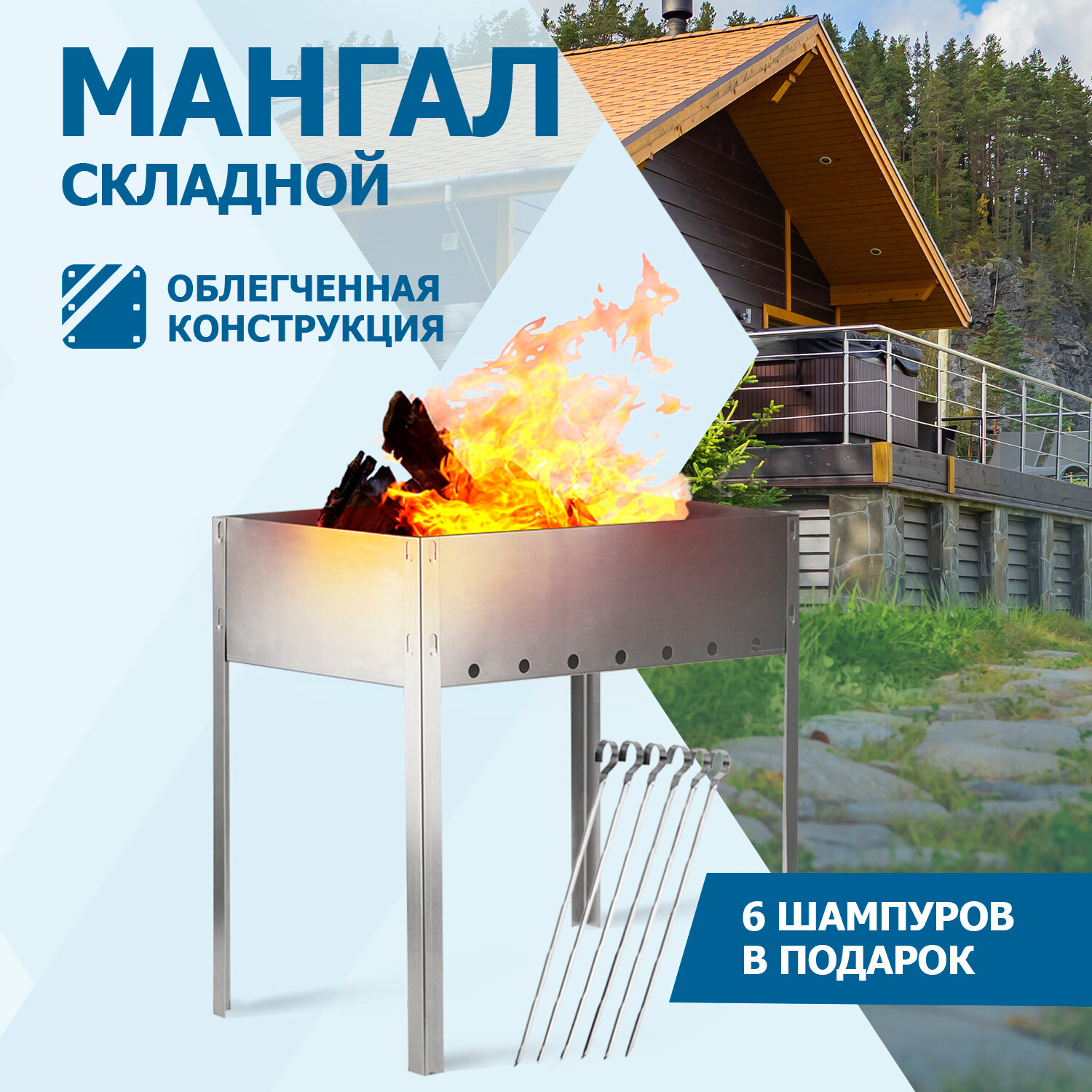 Гриль мангал 0,5 мм, складной угольный высокий разборный набор 6 шампуров для шашлыка и пикника на даче или кемпинга, отдыха на природе или походе, многоразовый товар