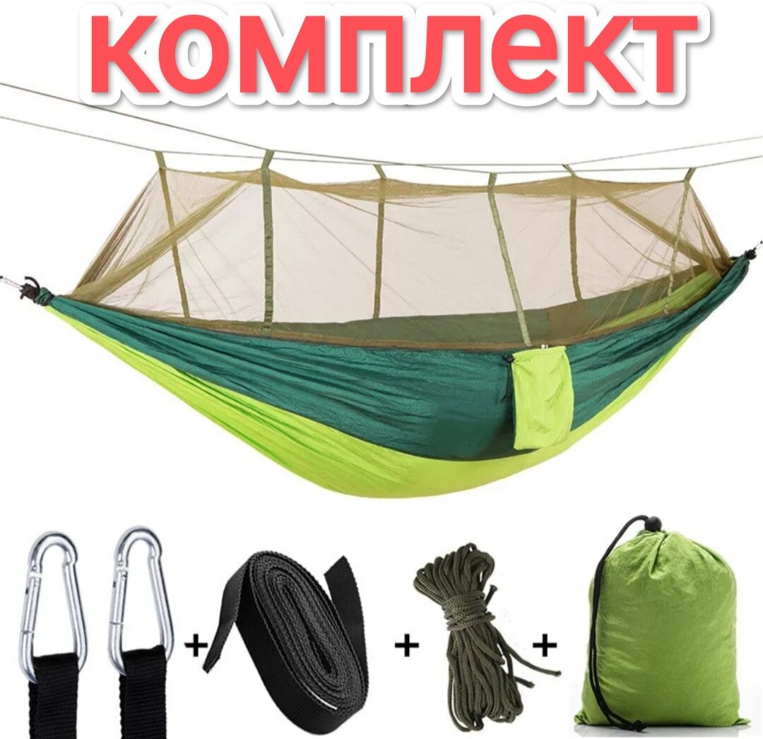 Гамак туристический с москитной сеткой для двоих, до 130кг, длина 2,6м, ширина 1,4м