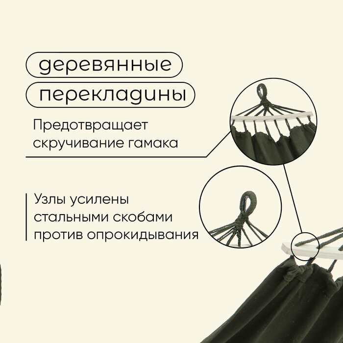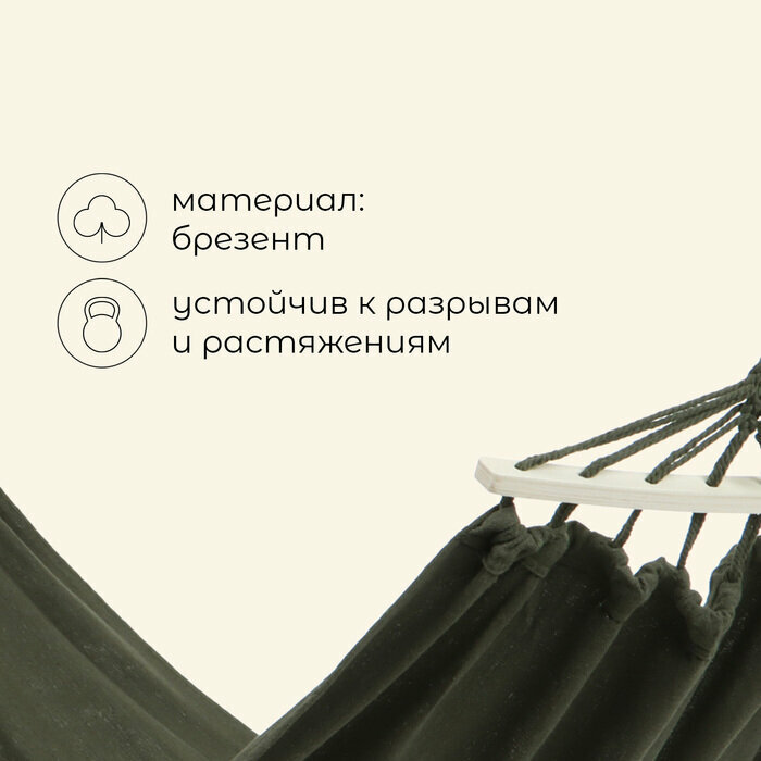 Гамак подвесной туристический Maclay 200 х 80 см, нагрузка до 80 кг, брезент, для пикника и похода, для дачи и дома, чехол в комплекте, цвет зеленый