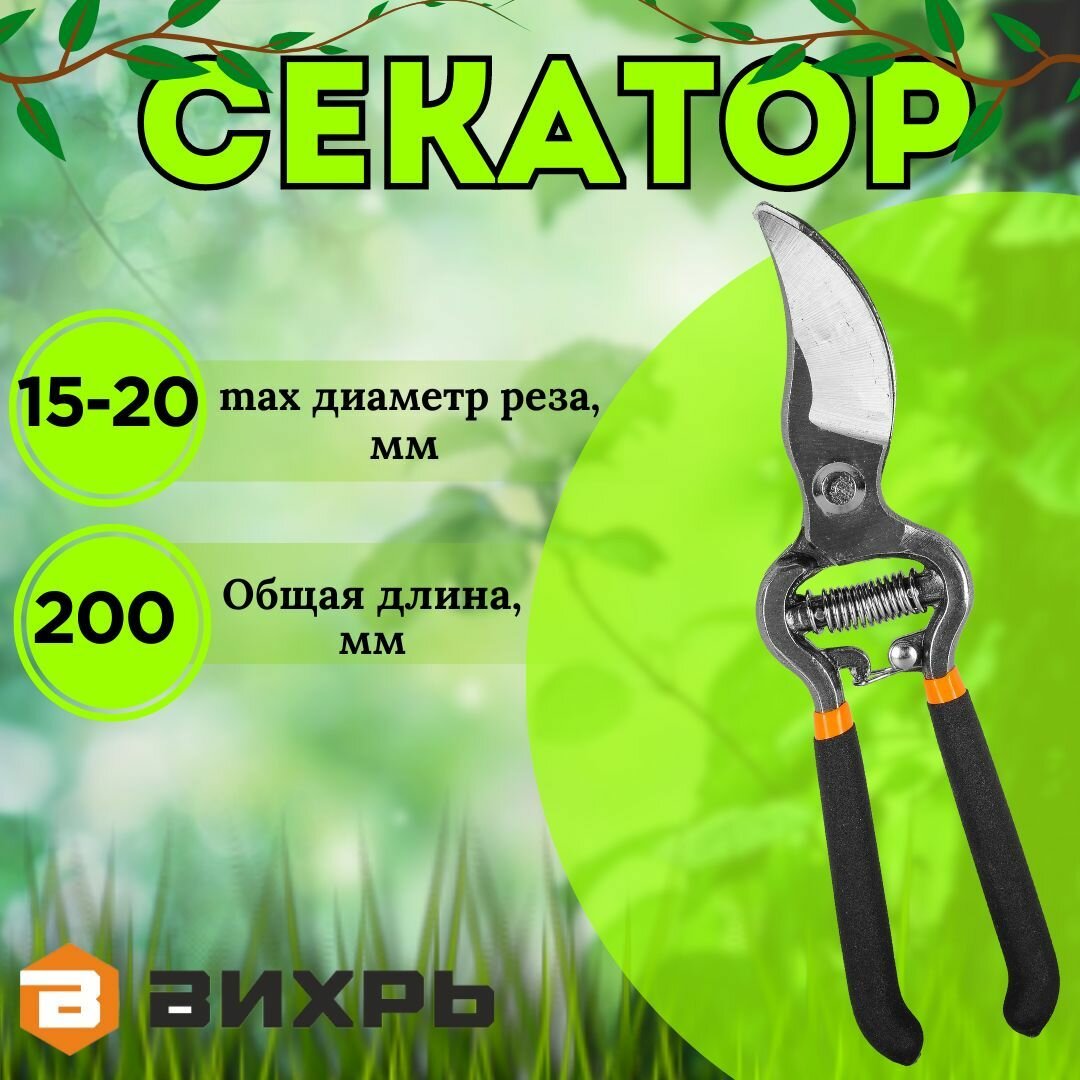 Секатор вихрь 200ммвозвратная пружинаобрезиненные рукоятки